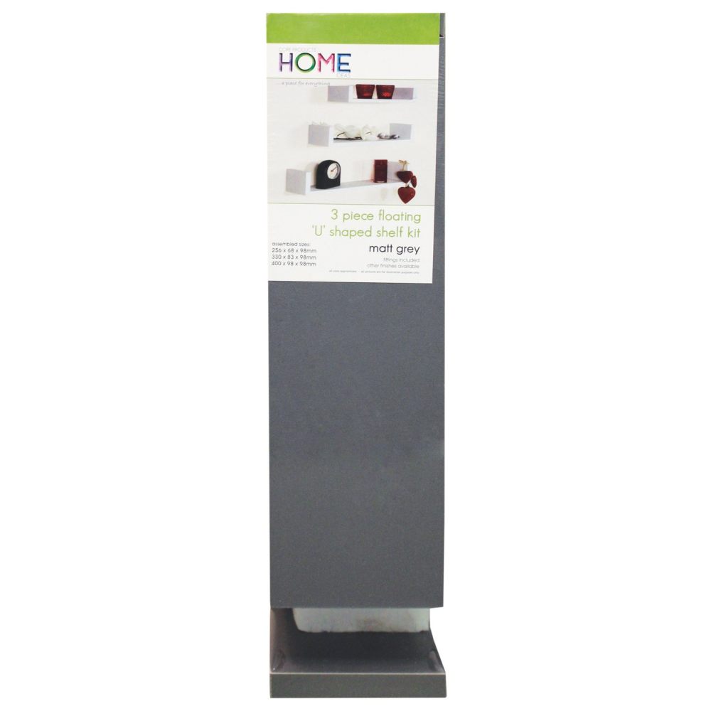 Core Home Grey 3pc Floating U-Shaped Shelf Kit