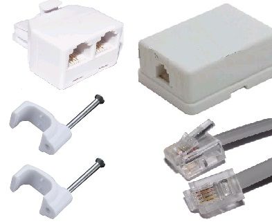Includes approx 20 cable clips, 2 way telephone splitter, surface mounted wall box and 15 meters of telephone cable.