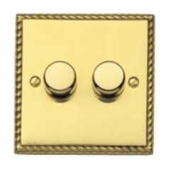 2 Gang 2 Way 400W Switch Polished Georgian Roped Brass Raised Dimmer