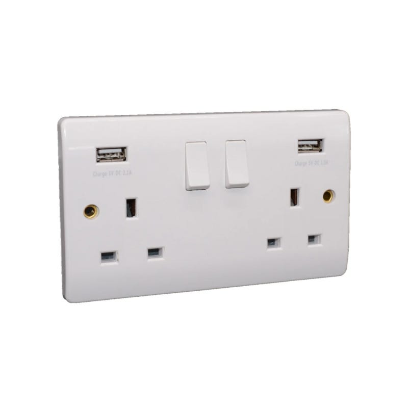 2 Gang Switched Socket & 2 USB Outlets