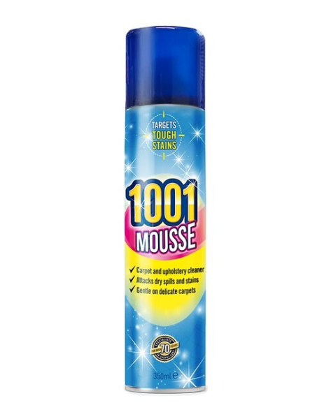 - 1001 Mousse is an easy-to-use quick drying cleaning mousse for treating spills & stains.