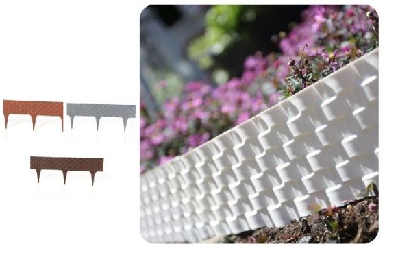 - Rattan garden edging is flexible, UV stable and ideal for edging flower beds, shrubs and borders. Simply fix into place using a rubber mallet.
