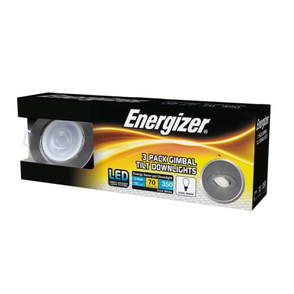 Energizer 5W Brushed Chrome Gimbal Tilt Cool White Downlights - Pack Of 3