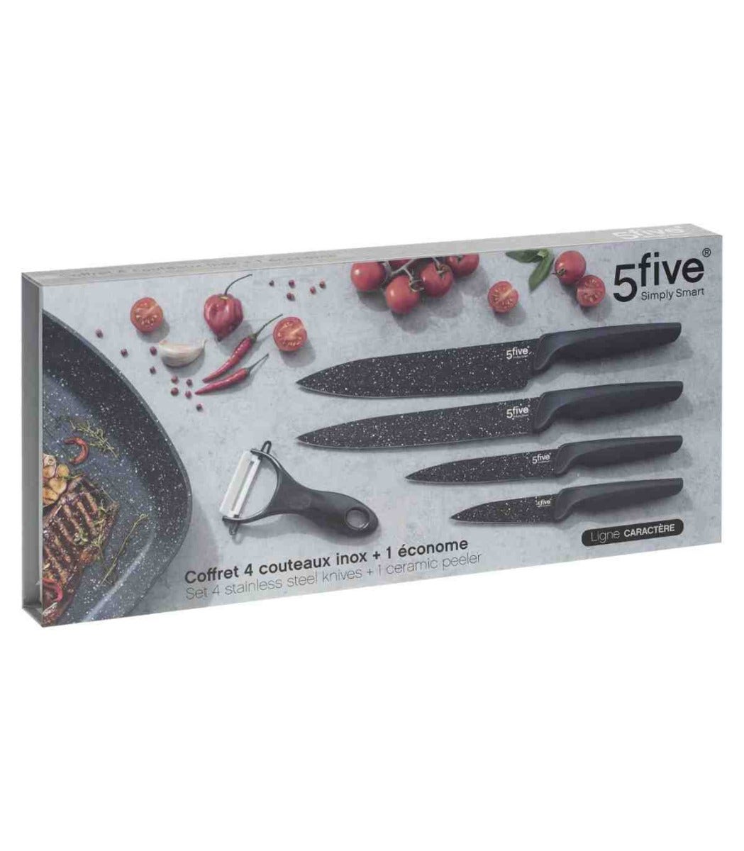 5Five Set Of 4 Stainless Steel Knives + Ceramic Peeler