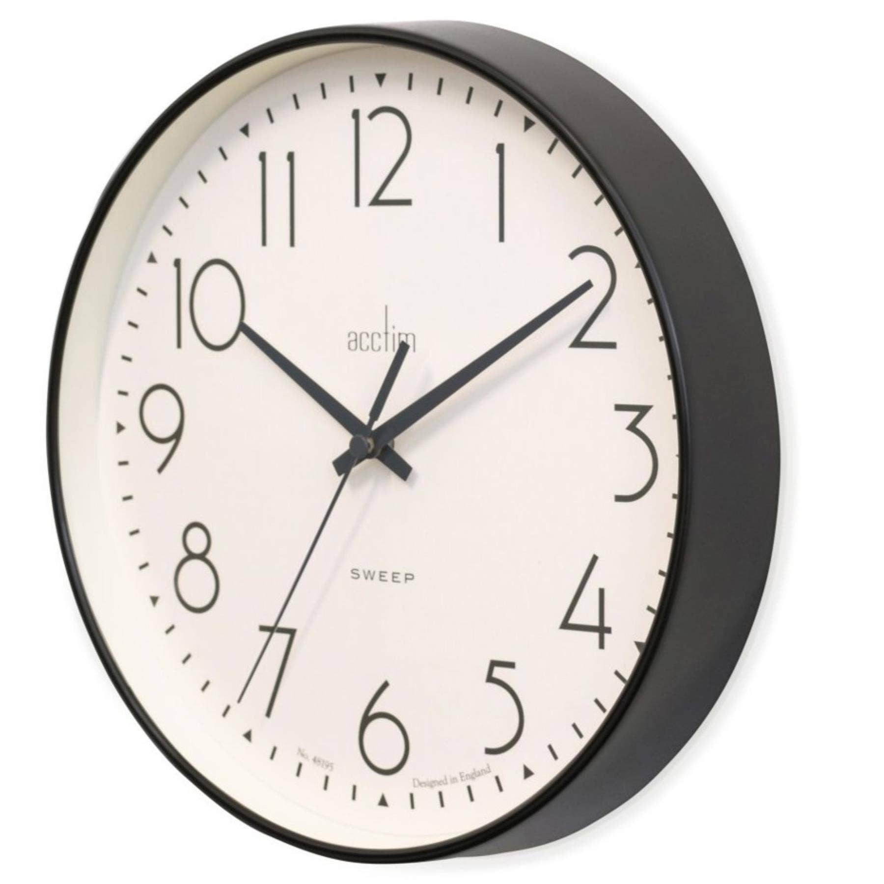 Acctim Earl 25cm Black Sweep Wall Clock – Silent Non-Ticking Analog Clock with Plastic Frame, Battery Operated