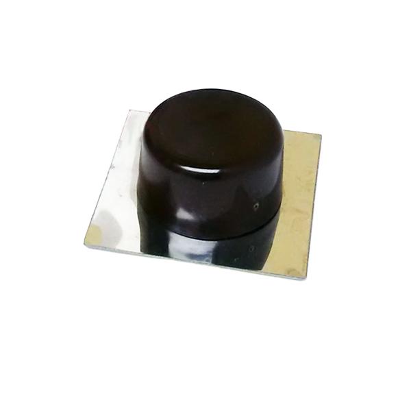 - Brown plastic door stop on a silver base