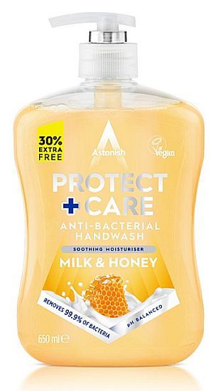 Astonish Protect Care Anti Bacterial Handwash - Milk & Honey 650ml