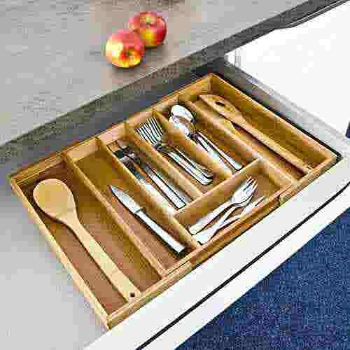 Adjustable Bamboo Cutlery Tray Set