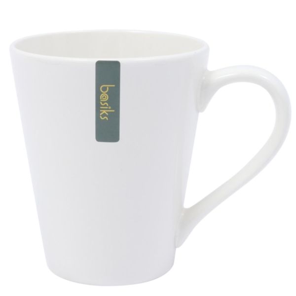 Basiks White Porcelain Cone Mug – Durable Microwave and Dishwasher Safe Coffee and Tea Mug