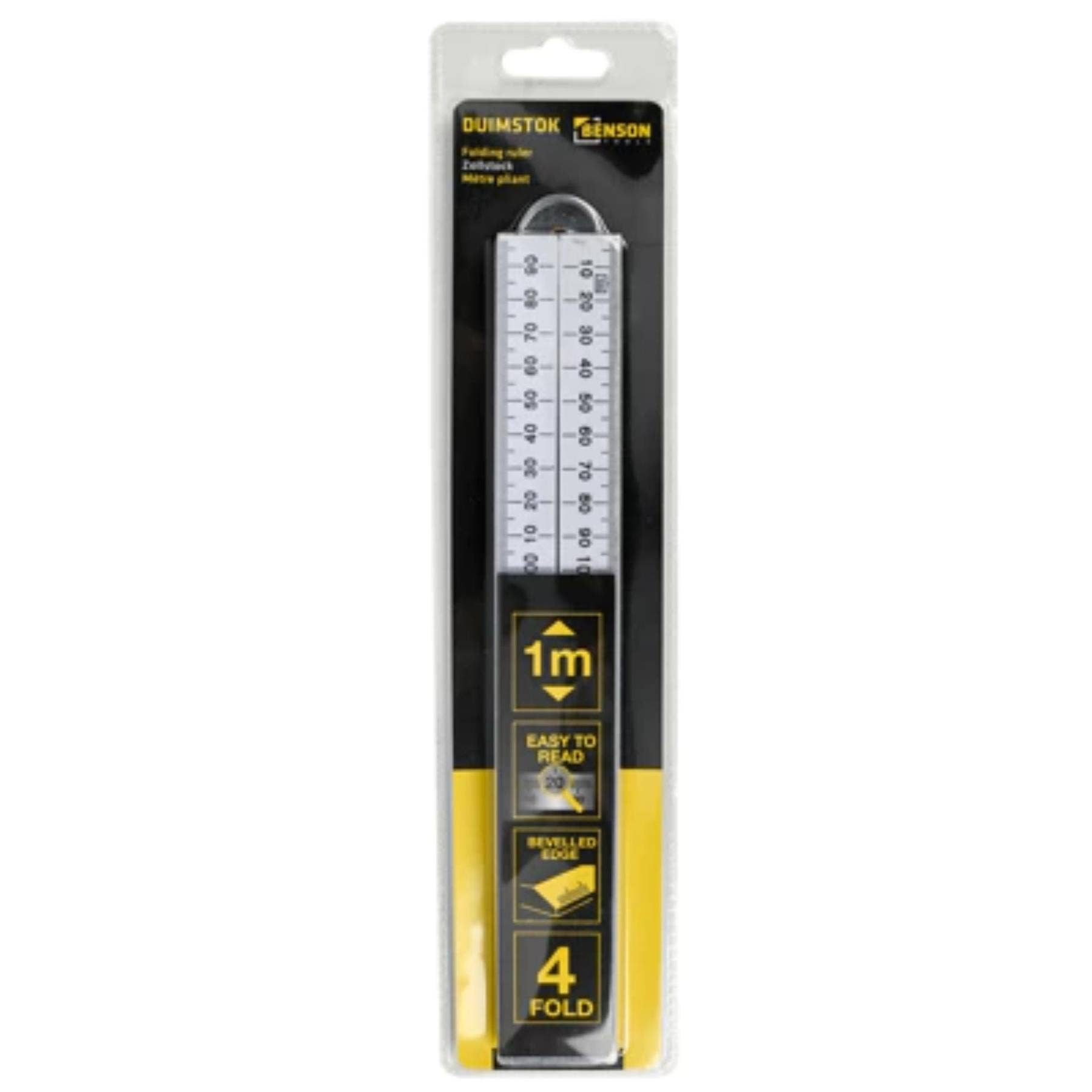 Benson Folding Ruler 1 Meter – 4-Piece Metric Scale Plastic Measuring Tool