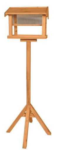 - this free standing solid wooden structure comes with a sturdy base plus a built in feeder that slots easily into the top of the roof.