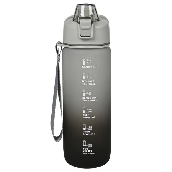 Black and Grey Motivational Drinking Bottle with Strainer and Locking Lid I 750ml