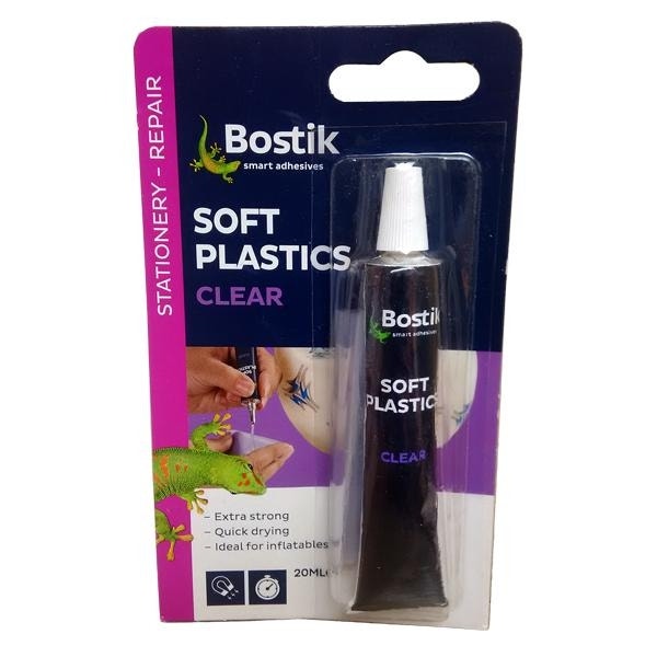 - Bostik Soft Plastics is an extra strong, quick drying, water resistant, clear adhesive.
