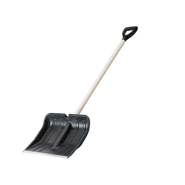 - Plastic head shovel with a metal lip ideal for shoveling snow.