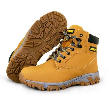 - Description: Cargo Storm Safety Boot with Steel Toe Cap and midsole honey colour nubuck leather upper, with a padded mesh lining and EVA footbed. This SBP boot has a shock-absorbing heel, oil/acid resistant dual density cemented sole, and meets the maximum SRC slip resistant safety standard. A perfect boot for most conditions.