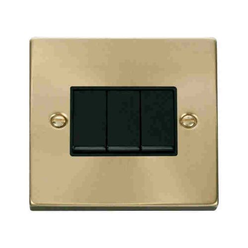 3 Gang Victorian Styled Brass Switch With Black Inserts
