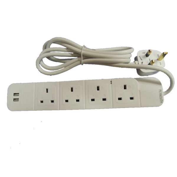 Plymouth 4 Gang 2 X USB 2M 2.1A Extension Lead