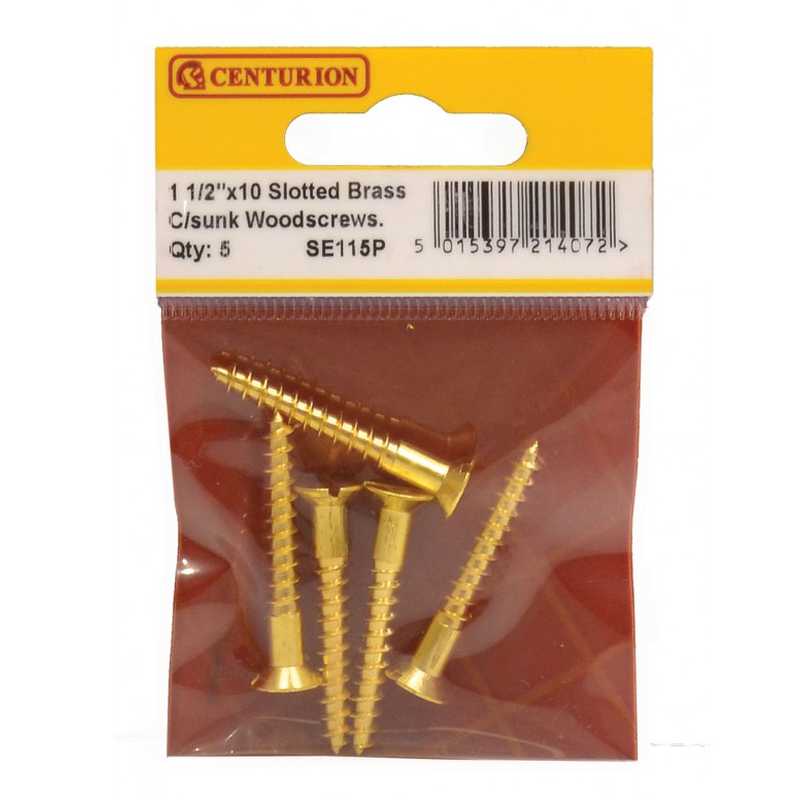 Centurion 1.5" x 10 Slotted Brass CSK Woodscrews - Pack Of 5