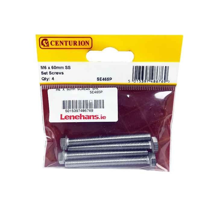 Centurion S.Steel Set Screws - M6 x 60mm - Pack Of 4
