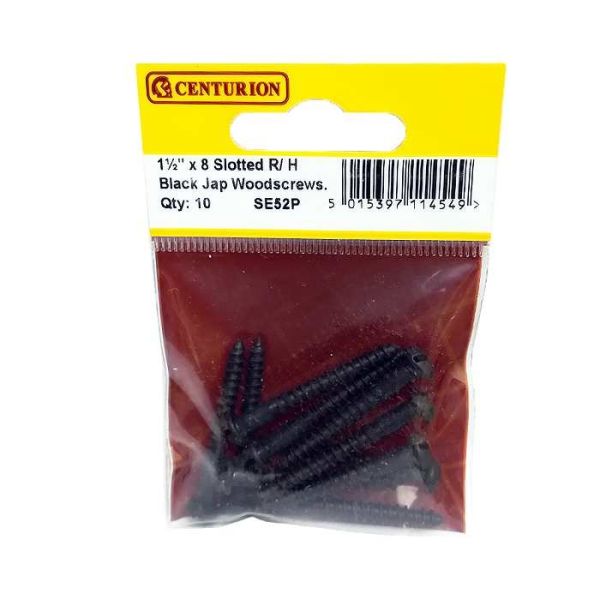 Centurion Slotted Round Black Jap Woodscrews - 1½" x 8 - Pack Of 10