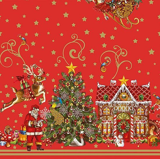 Christmas Oil Cloth Red Santa House