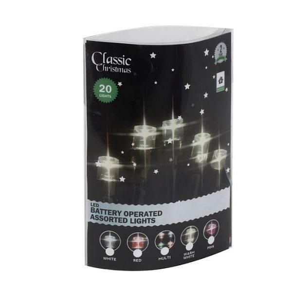 Classic Christmas 20 LED Battery Operated Christmas Lights - Pink