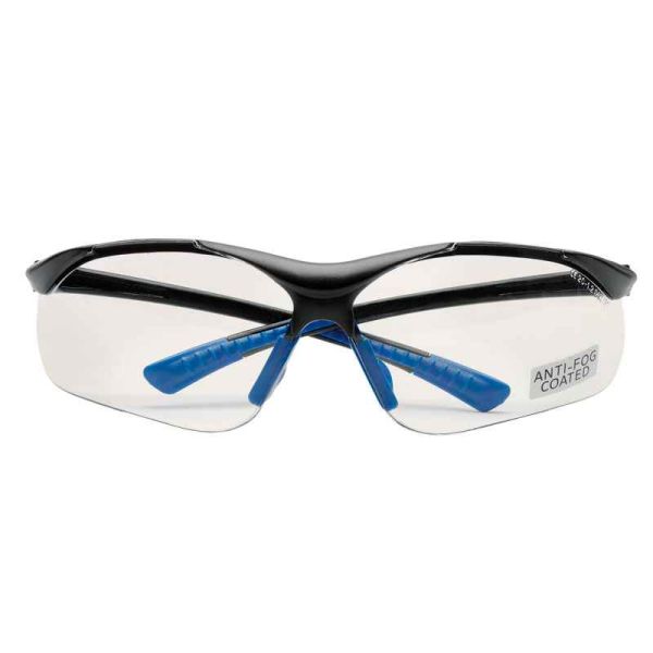 Clear Anti-Mist Safety Glasses - Blue & Black Frame