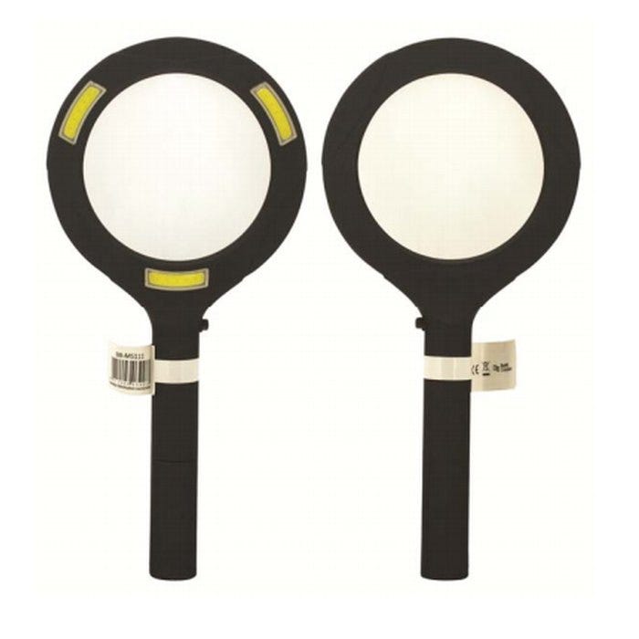 - This durable magnifier is manufactured from lightweight ABS with simple on /off button plus 3 x COB LED’s