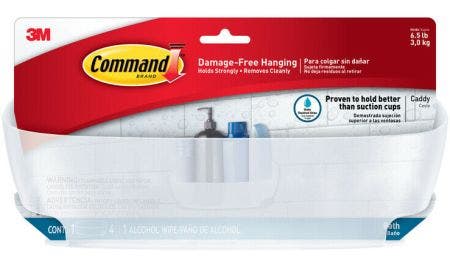 - Command™ shower caddy sticks to many surfaces, including glass, mirror, tile, fiberglass, wood and painted surfaces.
