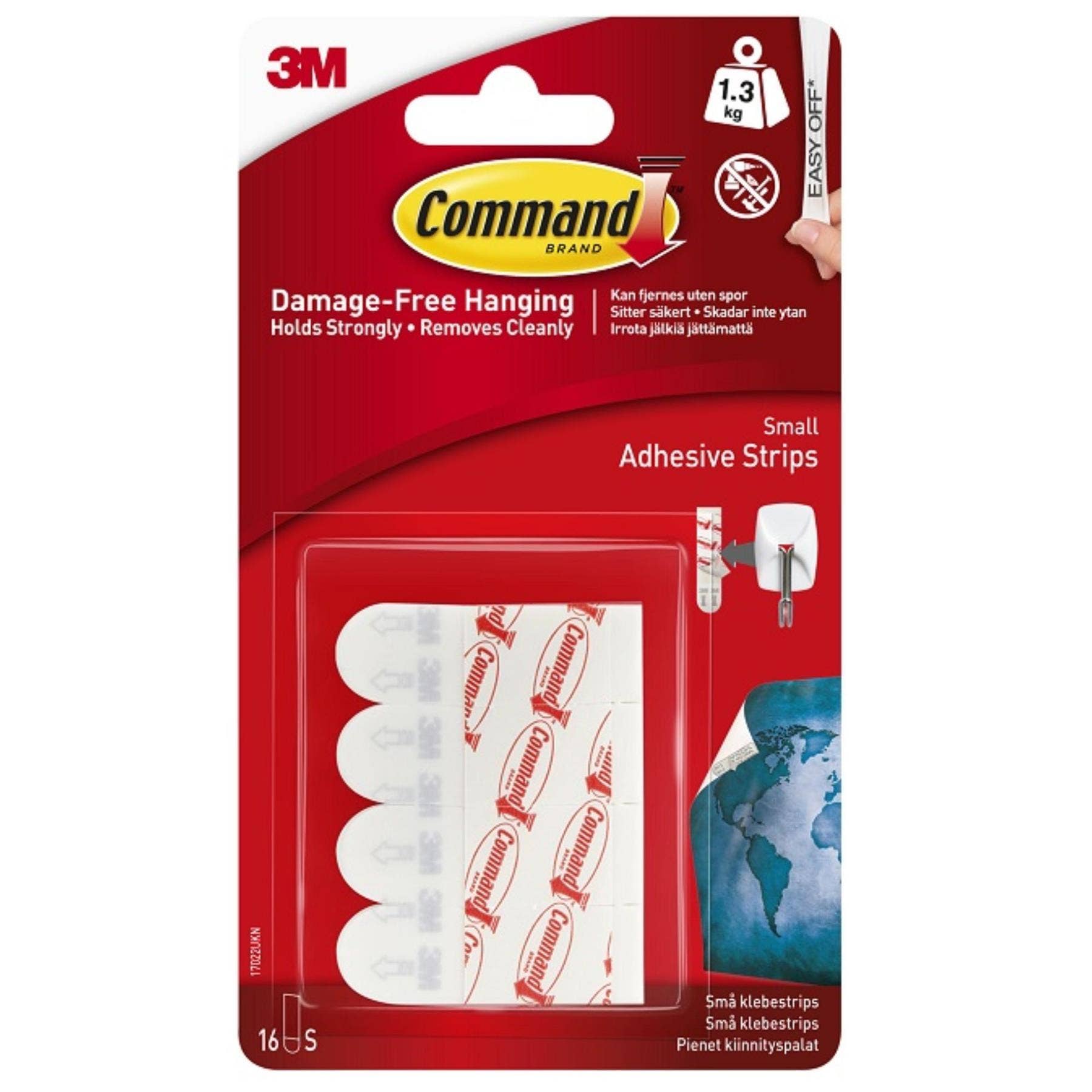 Hang what you want, where you want—without damage. The Command 17022UKN Small Adhesive and Refill Strips offer a secure and convenient alternative to nails, screws, and drills. With a holding capacity of up to 1.3kg, these 16 adhesive strips are ideal for hanging light household items or as refills for Command™ small hooks.