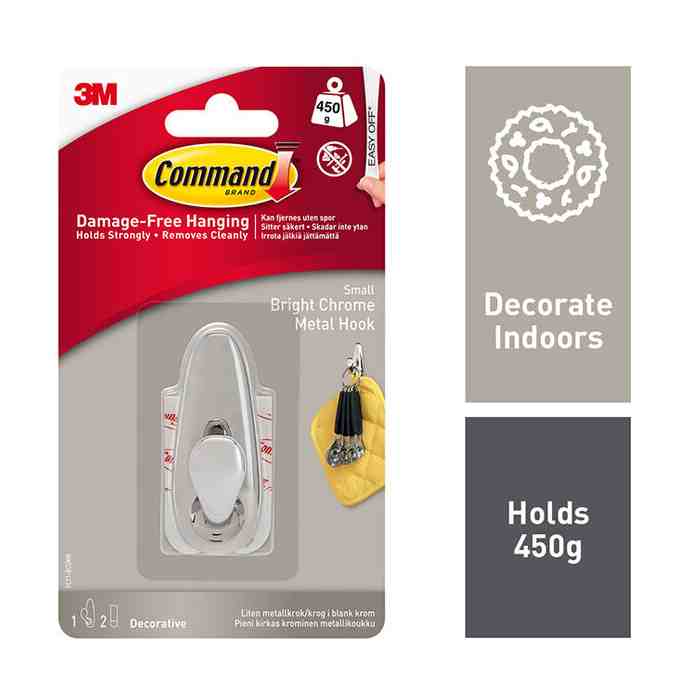 - Command™ Bright Chrome Metal Hook is our innovative solution for hanging everyday household items securely and damage free. It holds strongly and removes cleanly using 3M stretch-release technology.