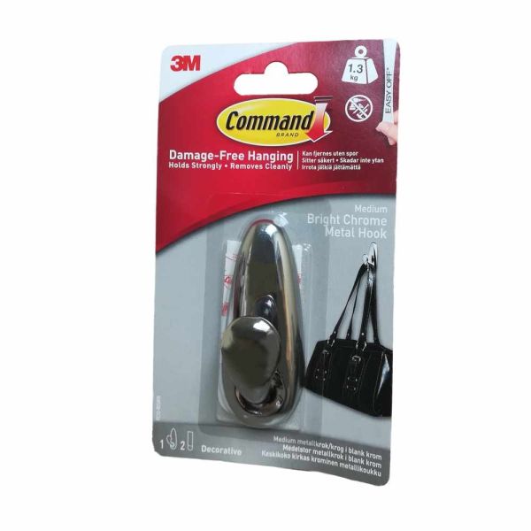 Command™ Hanging Bright Chrome Metal Hook - Medium - 1.3Kg