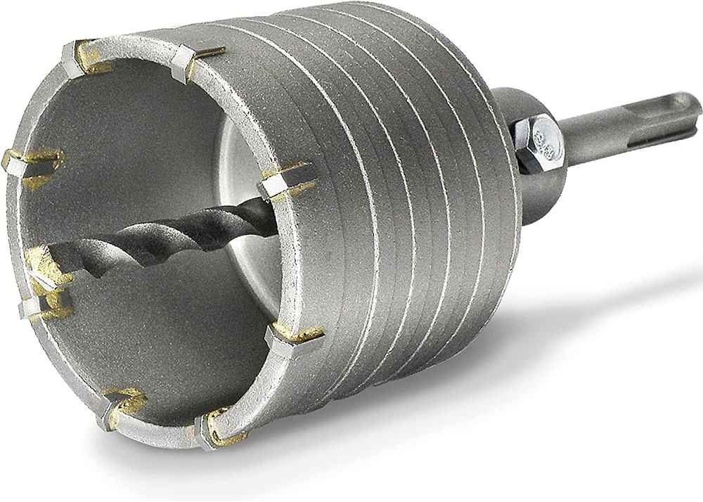 - Hole saw with pilot drill bit equipped with eight carbide blades.