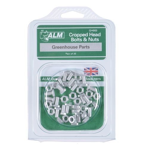 Aluminium bolts with a cropped head to slot into the glazing bars of aluminium greenhouses to fix shelves or staging. Suitable for most aluminium greenhouses.
