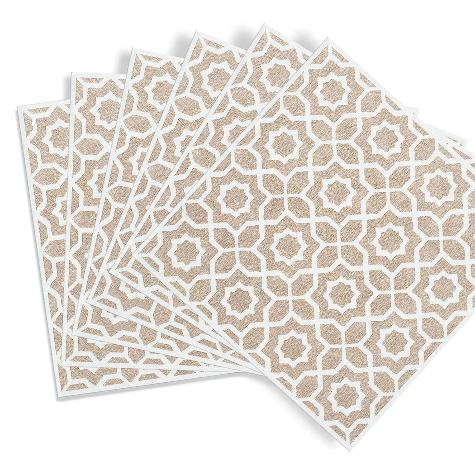 Transform your kitchen or bathroom walls with the D-C-Fix Lina Beige & White Self-Adhesive Wall Tiles. Featuring a Moroccan-inspired geometric pattern set against a soft beige textured background, these tiles offer an instant design upgrade with minimal effort.