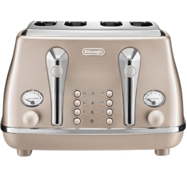 De’Longhi Icona Metallics 4 Slice Toaster Beige – Stylish Design with Versatile Functions