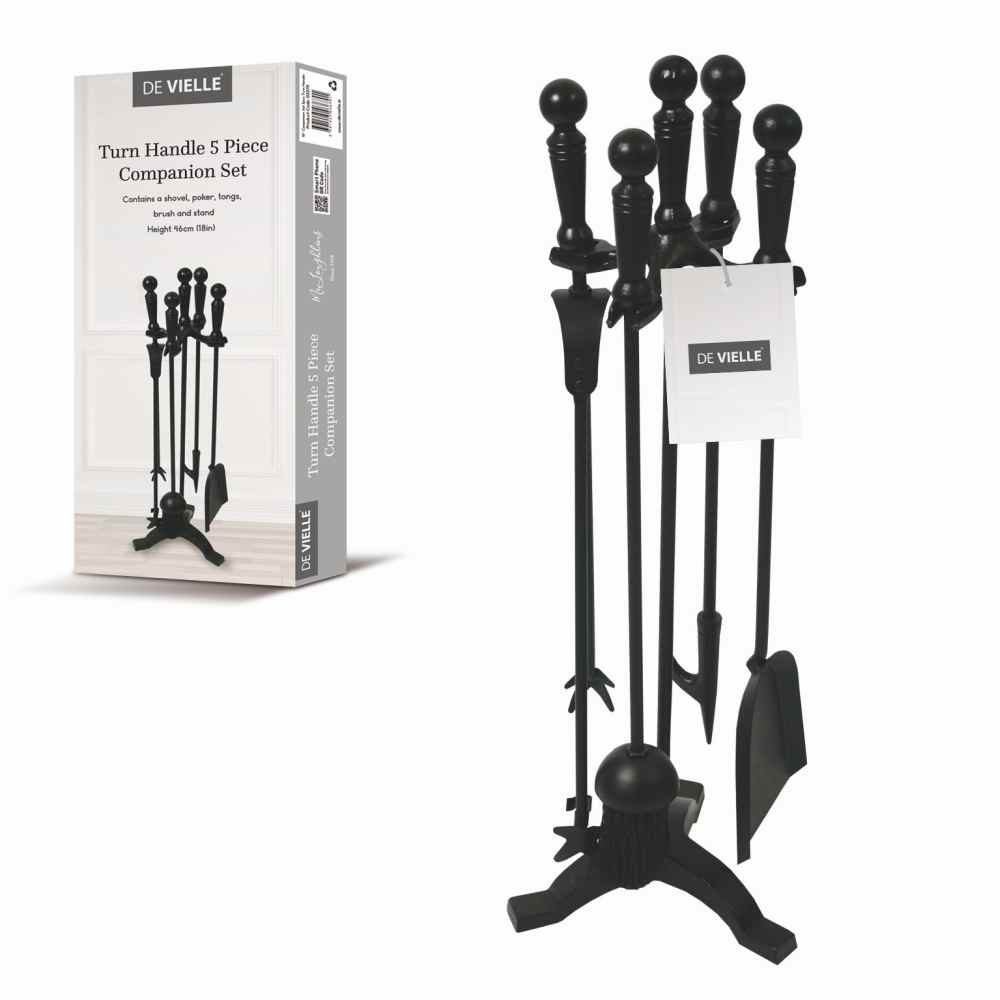 De Vielle 5pc Black Turn Handle Fireside Companion Set