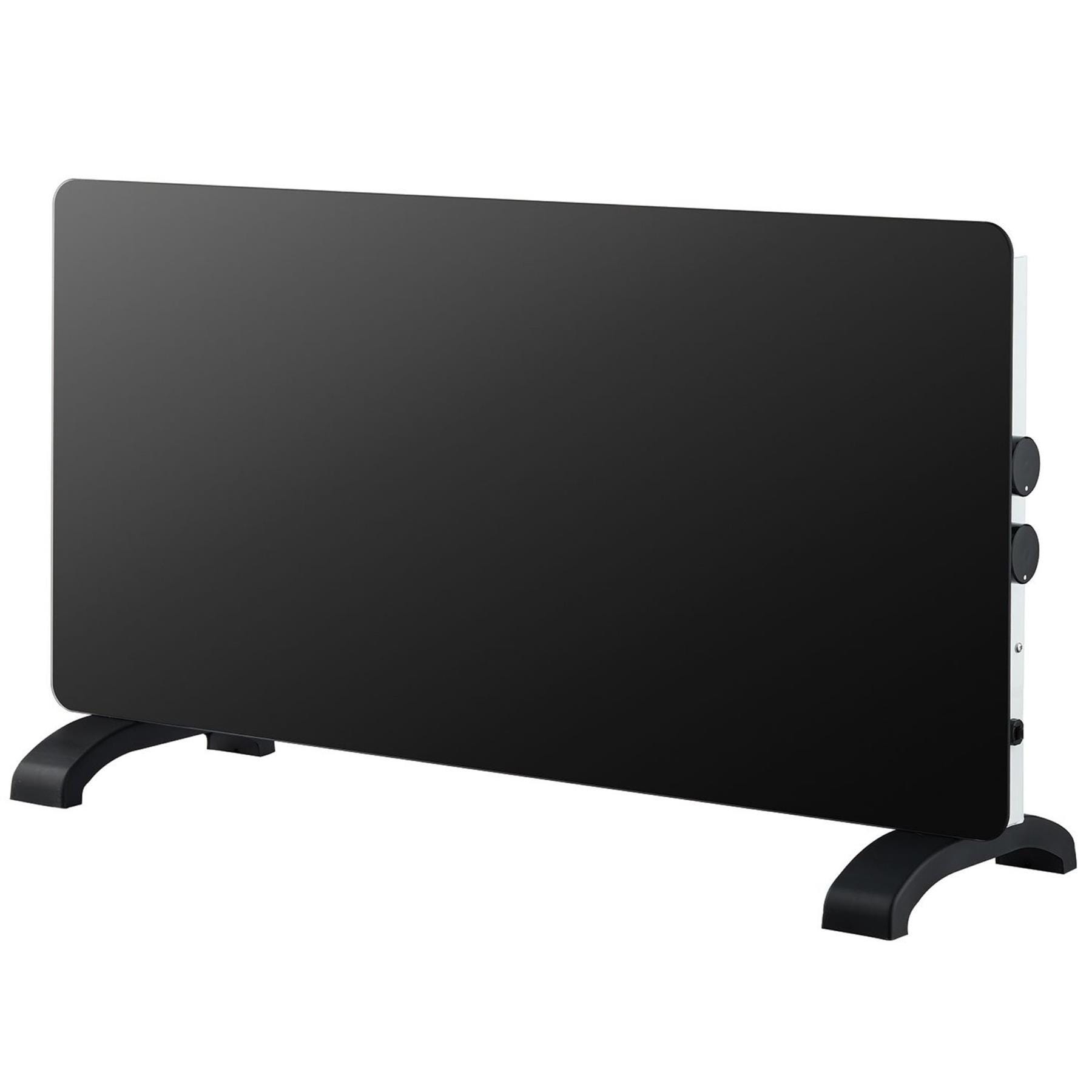 De Vielle Glass Convector Heater 2000W Black – Freestanding Electric Heater with Thermostat and Safety Cut-Out