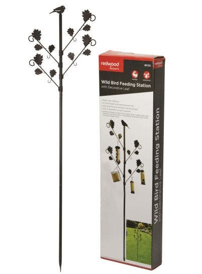 - Easy to assemble, durable & waterproof feeding station with decorative leaf design is manufactured from iron with a hammertone finish & is ideal for feeding wild birds.