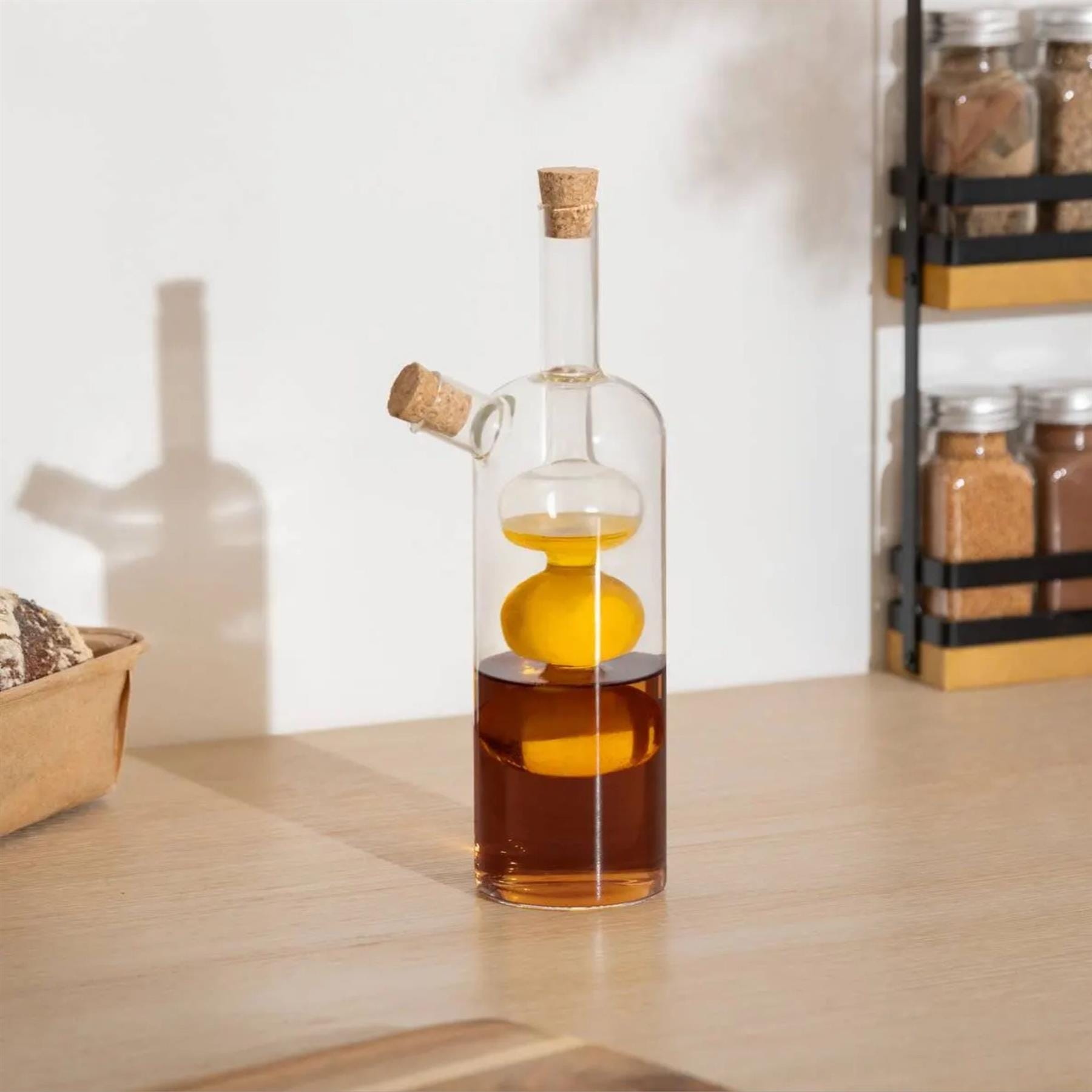 Design Glass Oil and Vinegar Bottle – Elegant Dual-Use Dispenser with Cork Stoppers