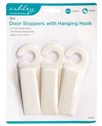 - These non slip wedge design door stoppers are manufactured from durable PVC material with a handy hanging hook.