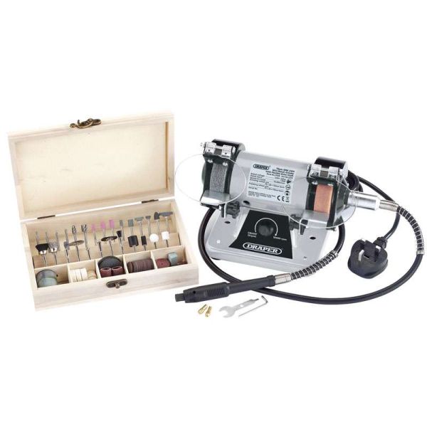 Draper 150W 75mm Mini Bench Grinder - with Flexible Drive Shaft and Box of Accessories