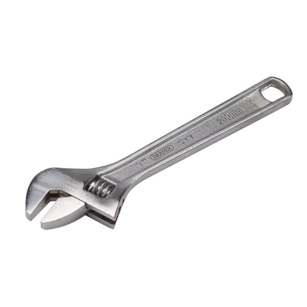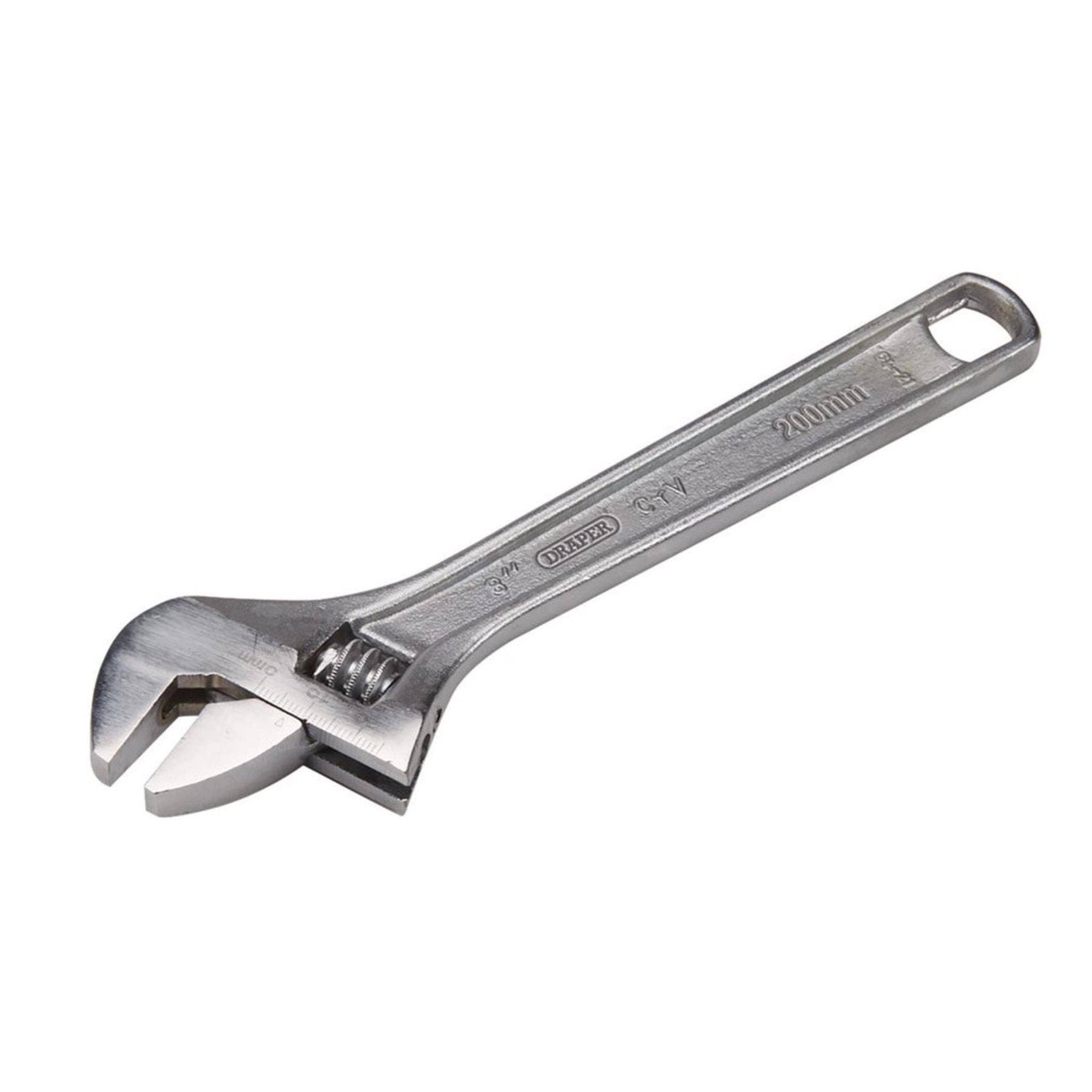 Draper Adjustable Wrench 200mm with 27mm Jaw Capacity Chrome Vanadium Steel Satin Finish
