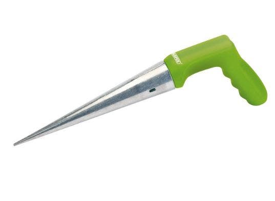 Diecast with pointed end with 'L' shaped handle. Designed to give maximum torque and operator comfort. Planting depth 210mm.