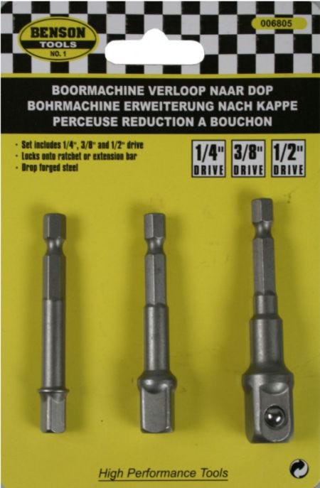Drill adapter to socket 1/4-3/8-1/2'' x 70mm
