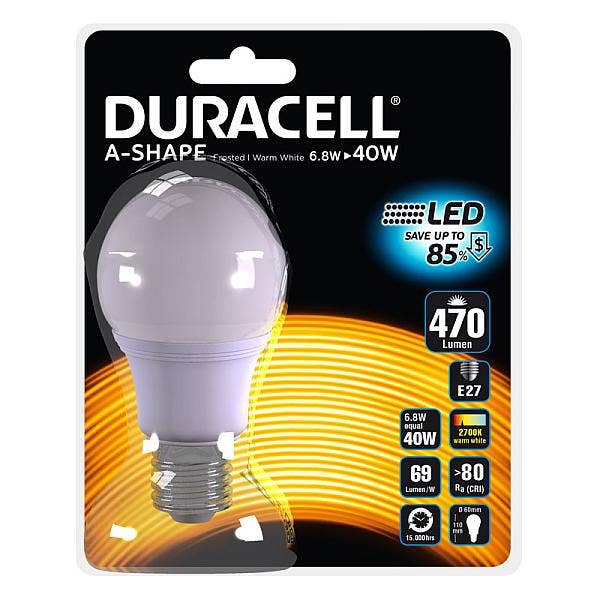 Duracell 6.8W LED A-Shaped Screw Cap E27/ ES Light Bulb