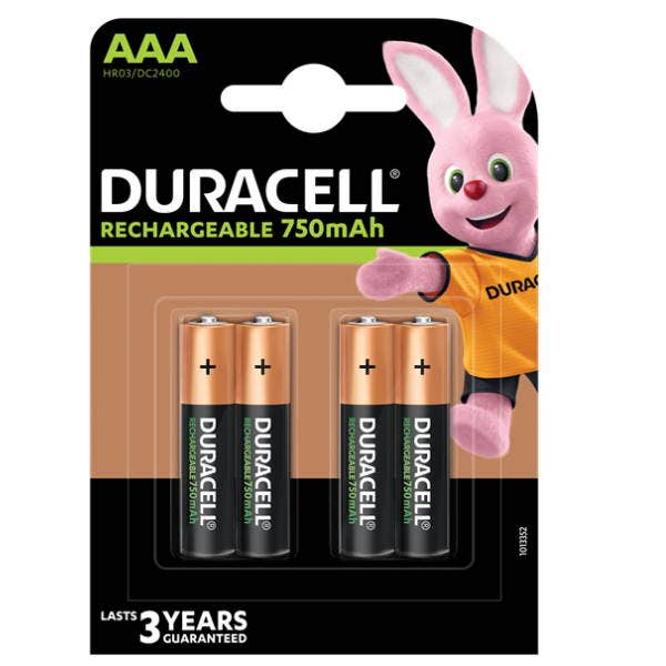 AAA Duracell Rechargeable Battery 750Mah Card of 4