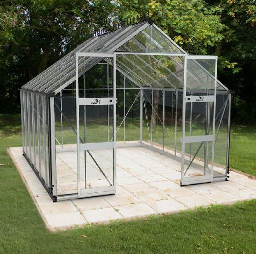 The huge Eden Bourton is a serious horticulturists dream. The large volume of air ensures the perfect growing environment and leaves enough space for a potting bench or table and chairs to enjoy the atmosphere of the greenhouse. Featuring a strong integral base which speeds up the construction process, the Bourton also boasts the no jam Eden Zero Threshold™ door system, making the greenhouse perfect for wheelchair users and for wheelbarrows and trollies alike. Available with long pane toughened glass or twin wall polycarbonate, the Bourton also comes in aluminium, green or black finishes. The large gutters and standard downpipes can harvest a vast amount of rainwater, perfect for watering the many plants you will be able to grow in the Bourton. Strong aluminium profiles ensure a long working life and like all Eden greenhouses, the Bourton is covered by our 12 year frame guarantee.