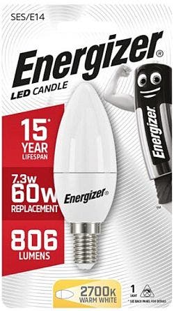Energizer LED 7.3W (60W) E14 Candle Lamp Warm White