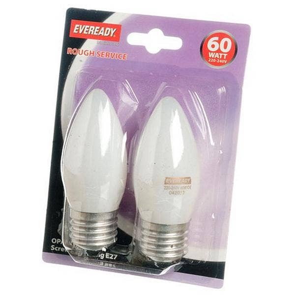 Eveready 60W Incandescent Opal Candle E27/ ES Lightulb - Pack Of 2